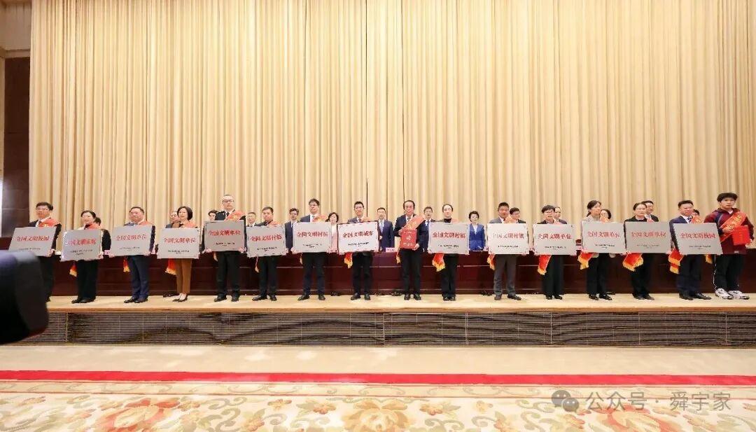 11月19日下午,宁波市高水平文明城市建设推进会在宁波市行政会议中心举行。大会对2025年新获表彰的全国文明城市、文明村镇、文明单位、文明家庭等予以授牌。